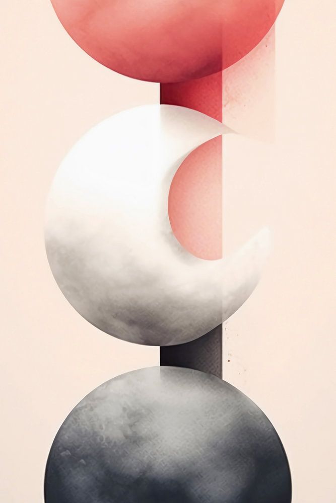 moon phase modern art in black pink and white