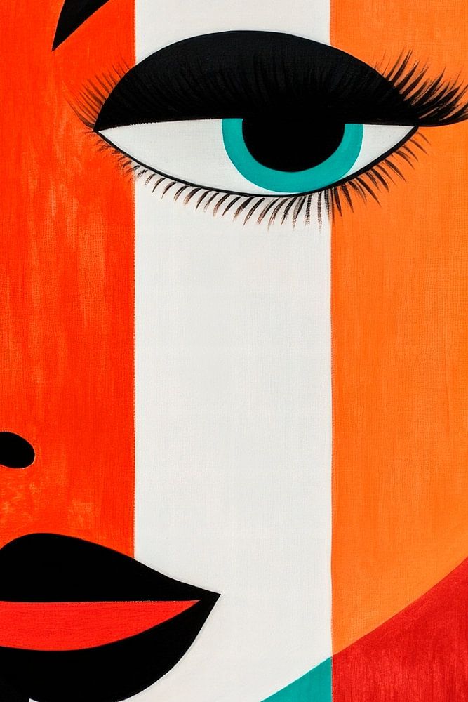 With strong colours and geometric shapes, this artistic portrait is sure to catch everyone's eye. The striking eye area and contrasting stripes give it a modern look. Perfect for the living room, it brings a touch of creativity and style to your space.