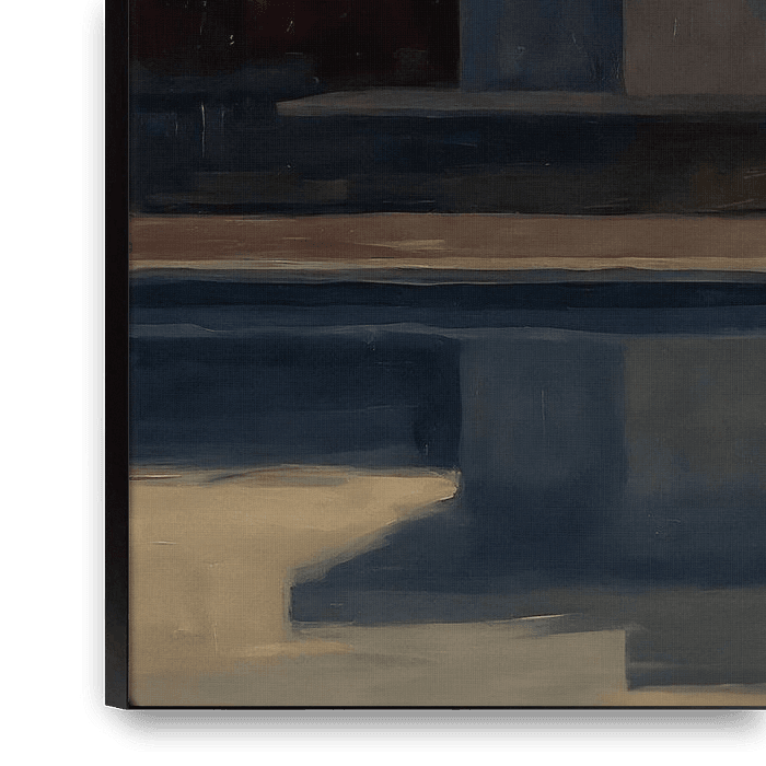 This painting captures a moment of quiet tension and introspection, blending modernist architecture with human vulnerability. As the artist, I sought to explore the juxtaposition of control and spontaneity, rules and rebellion. The swimmer, poised on the edge of the diving board, embodies a moment of decision—her body taut with…