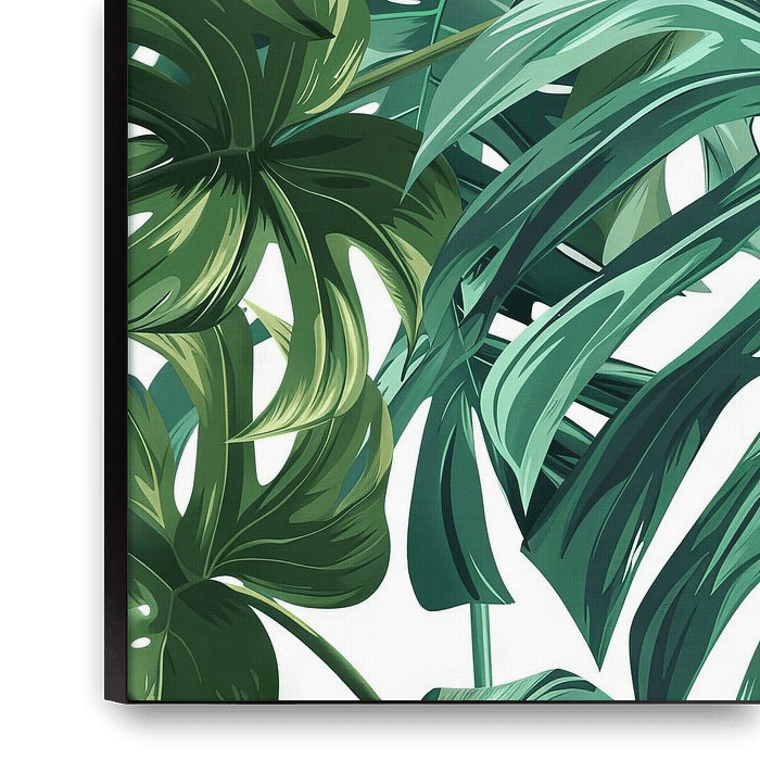 This artwork presents a collection of monstera leaves in a vibrant and lush display. The deep green tones and the characteristic cut-outs of the leaves give this art print a tropical and exotic atmosphere. The clear, light background emphasises the natural beauty of the monstera and brings it to the fore. Ideal for modern living spaces…