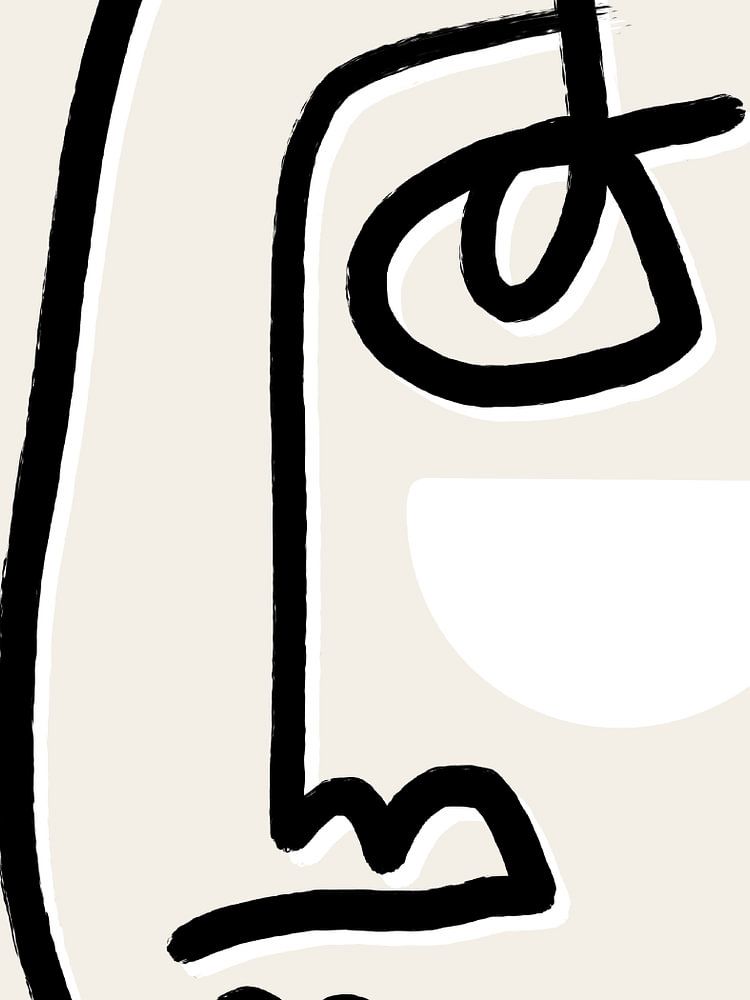 Minimalist portrait, paid from 1 flowing line. Black with a white accent.