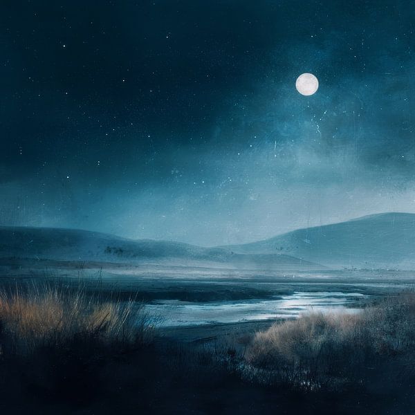 Buy this painting Moonlight over the Silent Land by Femea Stille Landschappen as a reproduction on canvas, ArtFrame, poster and wallpaper, printed on demand in high quality.