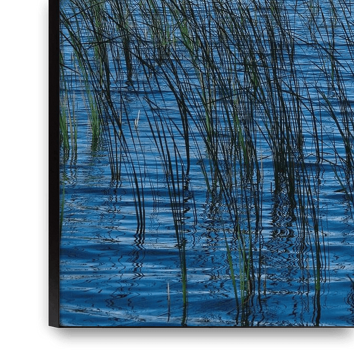 Lake in sweden with reeds and tranquillity in the summer sun. The blue in the water or sky dominates the image