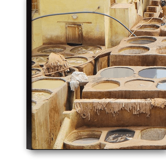 Buy the photo Moroccan tanneries - authentic street scene from Fez by Arman Angishan on canvas, ArtFrame, poster and wallpaper, printed on demand in high quality.