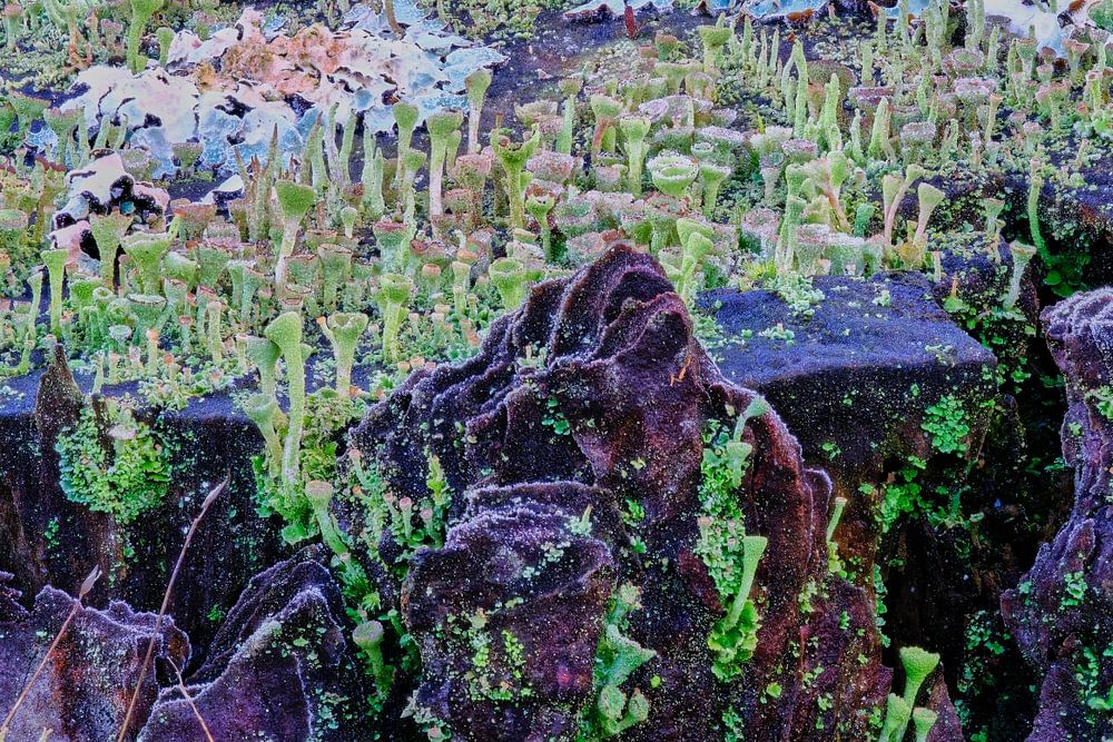 The special world of mosses and lichens in the dunes. A beautiful close-up of the magical world of Mosses and Lichens. Only normally seen through a magnifying glass. Because of the night frost also some ice crystals .