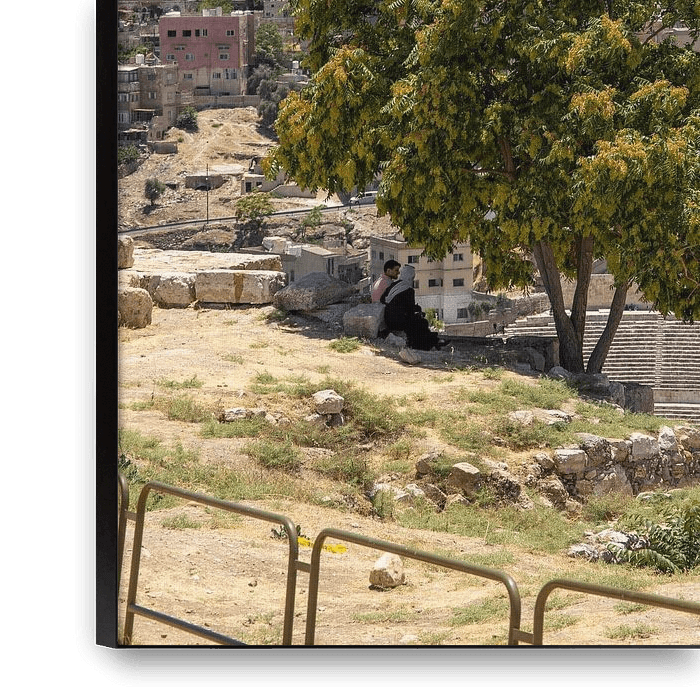 Buy the photo Mother and child look out over Amman. by Floyd Angenent on canvas, ArtFrame, poster and wallpaper, printed on demand in high quality.
