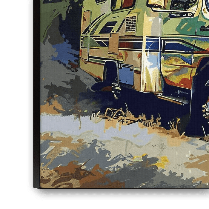 Buy this digital art artwork Motorhome holidays in nature by Art & Soul Creations as a reproduction on canvas, ArtFrame, poster and wallpaper, printed on demand in high quality.