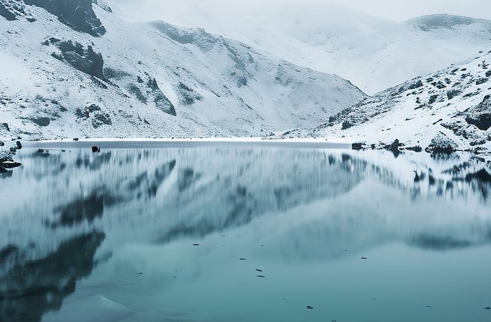 Buy this landscape artwork Mountain lake in winter by fernlichtsicht on canvas, ArtFrame, poster and wallpaper, printed on demand in high quality.