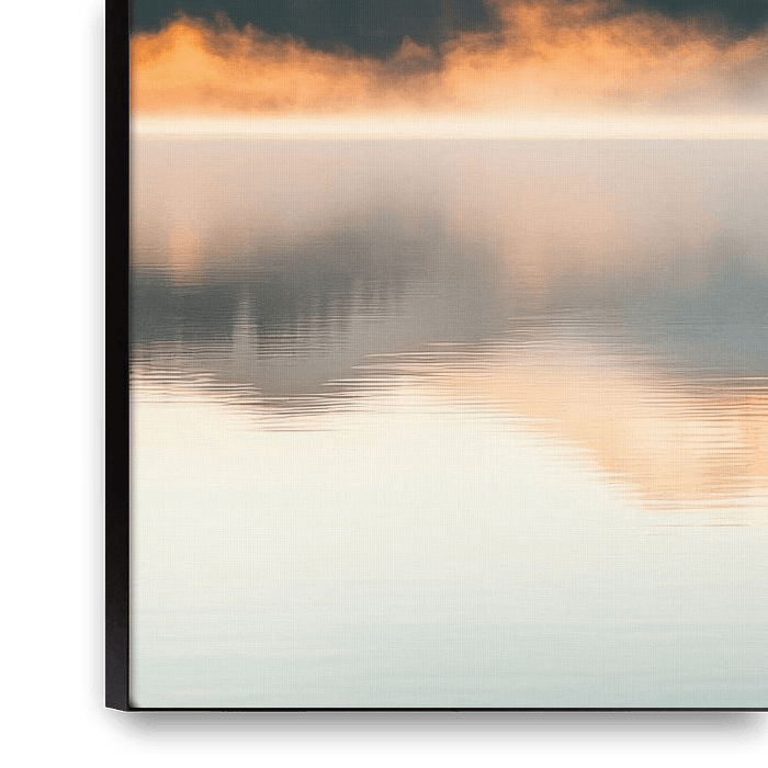 Buy this landscape artwork Mountain lake morning mist by Poster Art Shop on canvas, ArtFrame, poster and wallpaper, printed on demand in high quality.