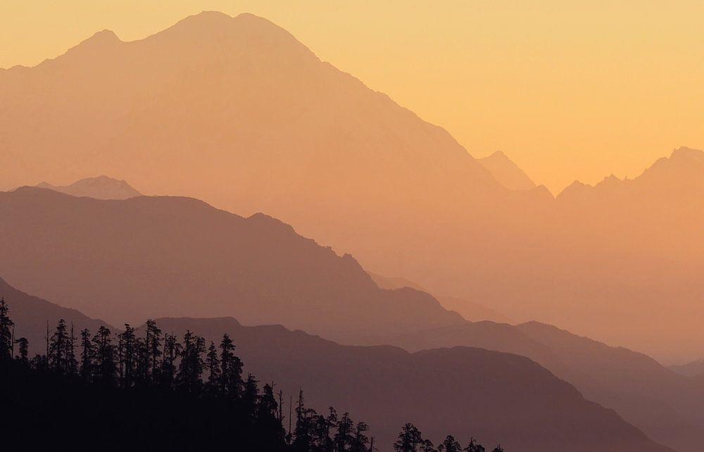 Mountain landscape of Nepal ( Himalaya ) during sunrise. Photo is taken from Poonhill.