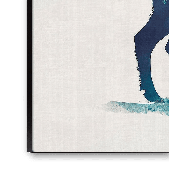 This artistic motif captures a majestic mountain landscape in an imposing animal in passionate colour tones. The combination of bold blue and warm orange creates an impression of freedom and adventure. Ideal for the living room, it brings a harmonious combination of nature and creativity to any room.