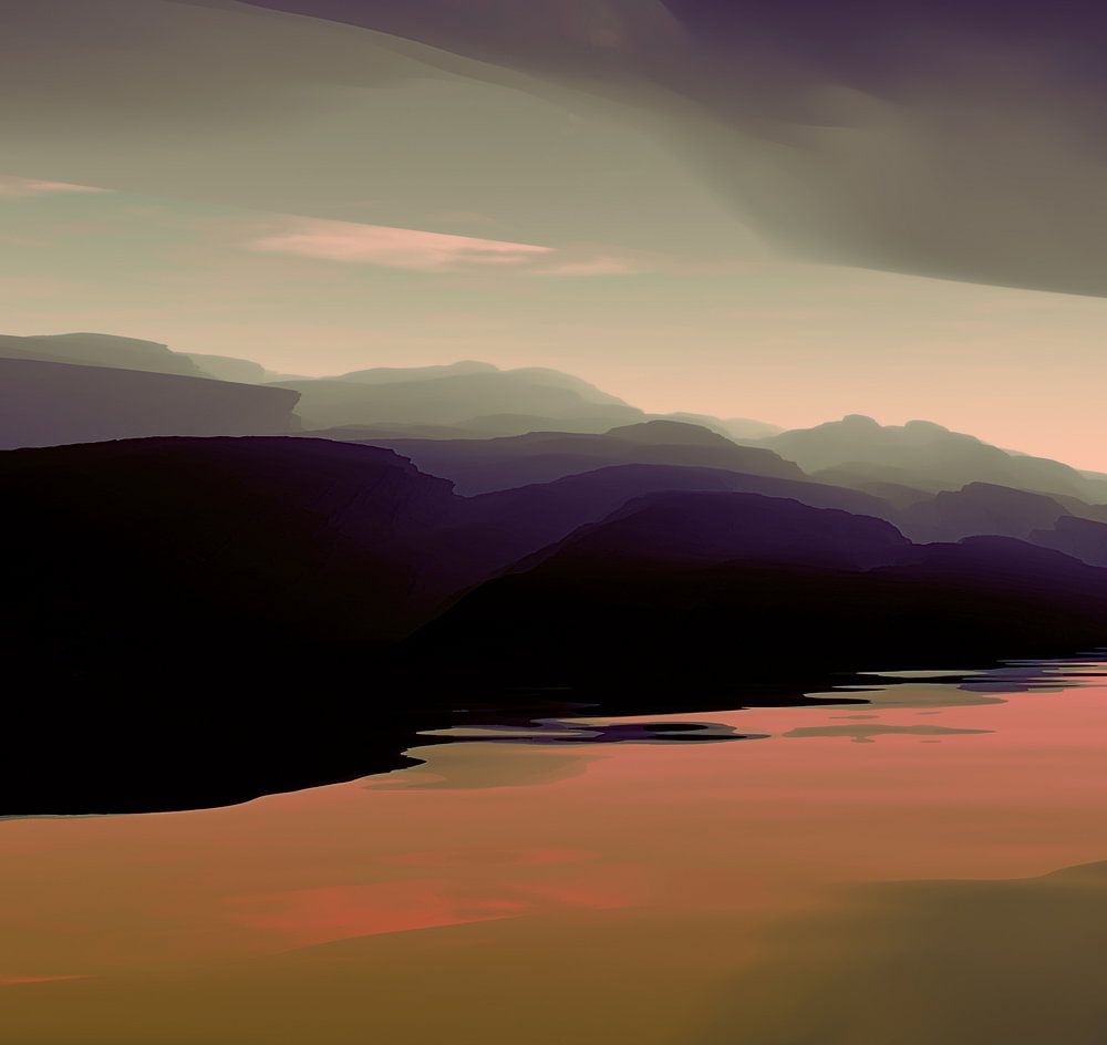 Buy this landscape artwork Mountains at sunset by Angel Estevez on canvas, ArtFrame, poster and wallpaper, printed on demand in high quality.