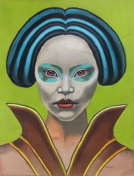 My Sweet Geisha is a surrealistic portrait. My Sweet Geisha was created using pastel chalk and pastel pencils. The portrait is surrealistic and fictional.