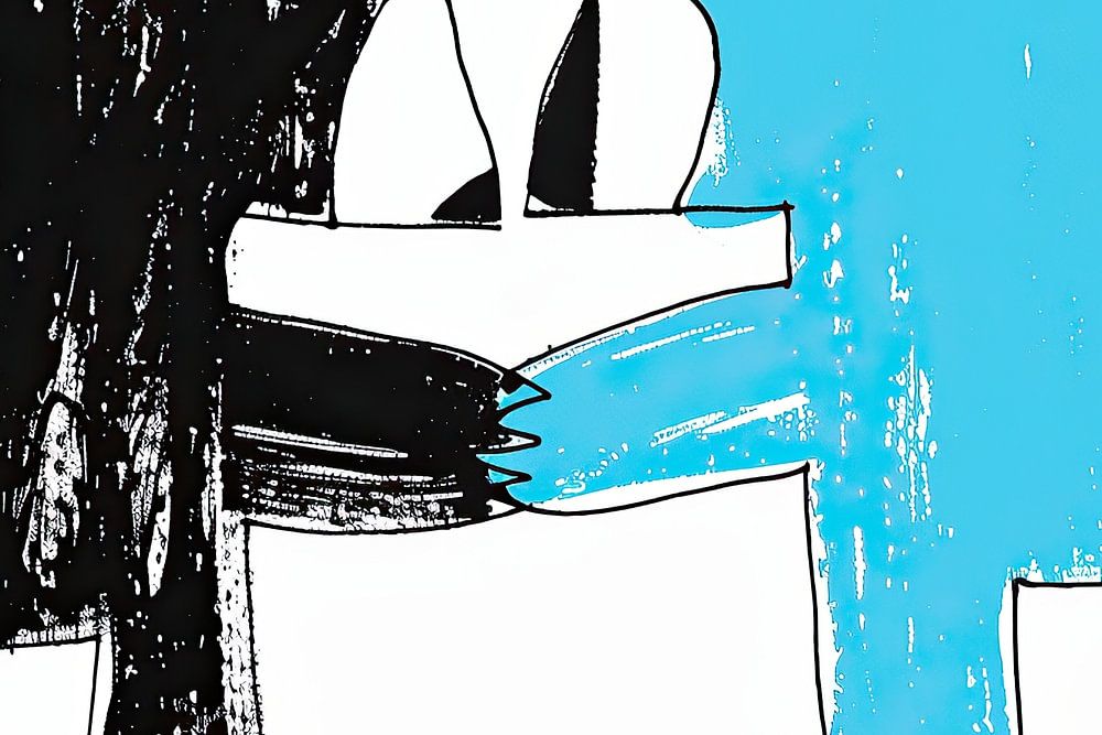 Mystery Box - This abstract animal painting shows two stylised bears in contrasting black and blue sharing a mysterious box.