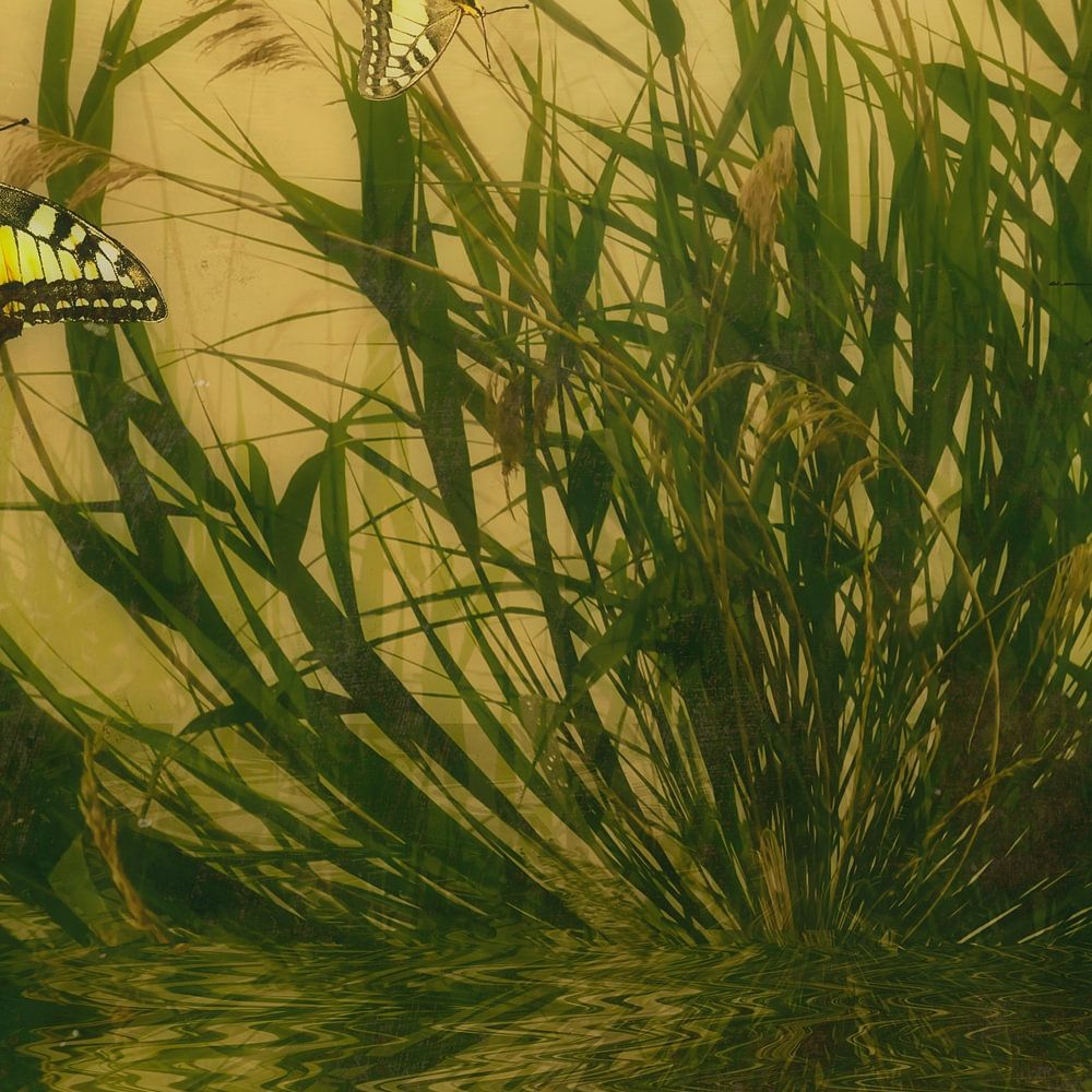 Butterflies in the reeds, swallowtail, reeds, floodplain , floodplain forest, grasses, insects, nursery, children's motif, insects, glamour, shiluettes, face in a circle, shadow, reflection, reflection, digital art, digitalart, collage, illustration, magical, mystical, graphic, tranquil dawn, square, butterfly painting, green, spiritual, magical, mystical, nature, inspiration, ZEN, Feng Shui, In a faraway land, magic land, fairytale, beach, impression, calm, silence, silent lake, science, harmony, longing, meditative, paradisiacal, beyond Eden, monotonous, monochrome, tropical, landscape, lost places, wild wonder, sunset, digital art, urban jungle, magical, indian summer, new rural, Christine Nöhmeier alias Chris Berger Simbach am Inn - Painting, watercolours, acrylics, graphics, illustration, tranquil dawn, rural new, photography, cover, photo editing, photo art, poster, canvas, art print,