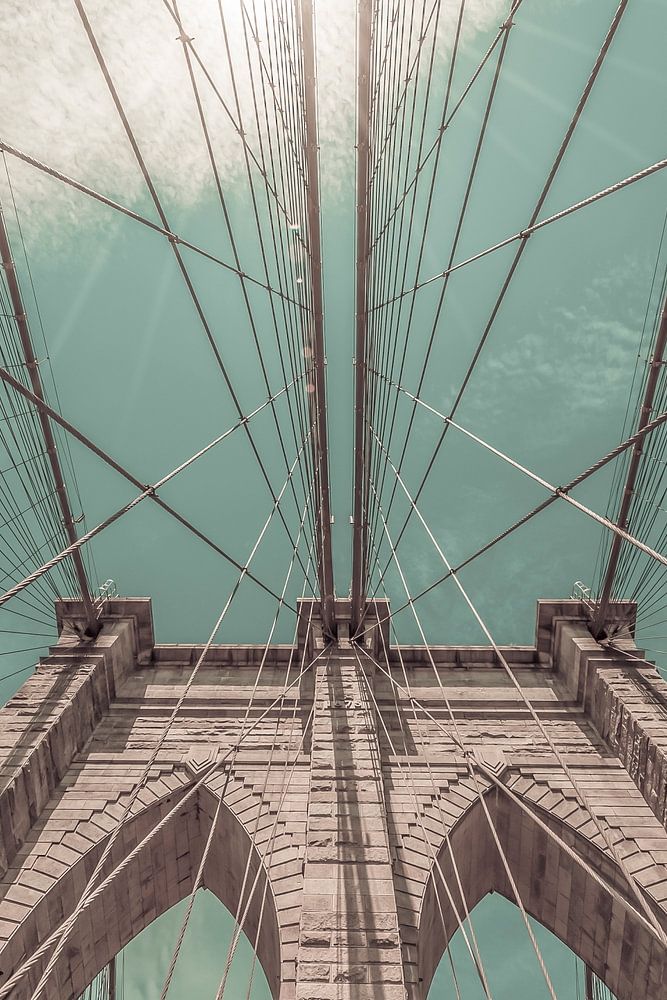 The Brooklyn Bridge is a bridge in New York City and is one of the oldest suspension bridges in the United States. Completed in 1883, it connects the boroughs of Manhattan and Brooklyn by spanning the East River. This is a beautifully architectural cityscape with it’s steel cable construction in detail and some sunrays.