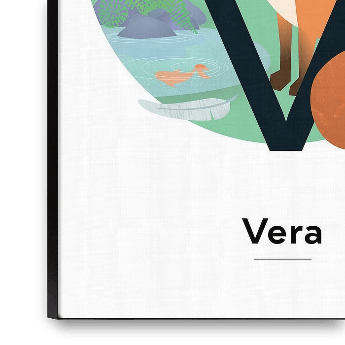 Buy this bird art Name poster Vera by Hannah Barrow on canvas, ArtFrame, poster and wallpaper, printed on demand in high quality.