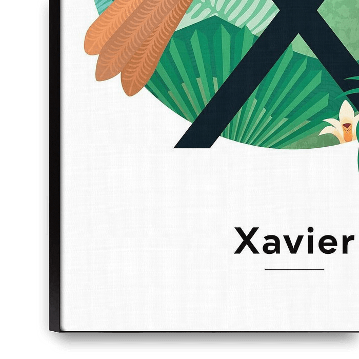 Buy this bird art Name poster Xavier by Hannah Barrow on canvas, ArtFrame, poster and wallpaper, printed on demand in high quality.