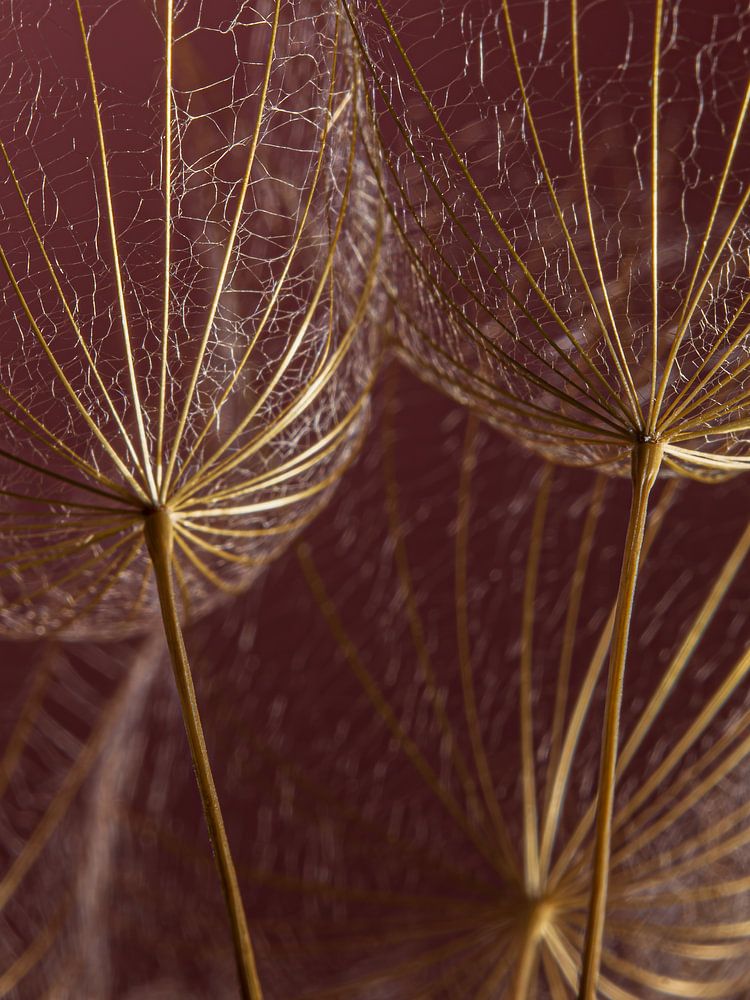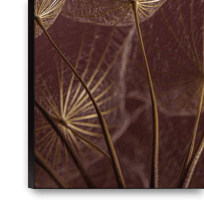 "Naturally chic: Gold in the warm light" is a macro photo I took for wall decoration. The light falling on the wood-coloured fluff makes the fluff appear almost golden. This warm colour stands out beautifully against the purple/mauve coloured background. This gives a warm chic look to the piece.
