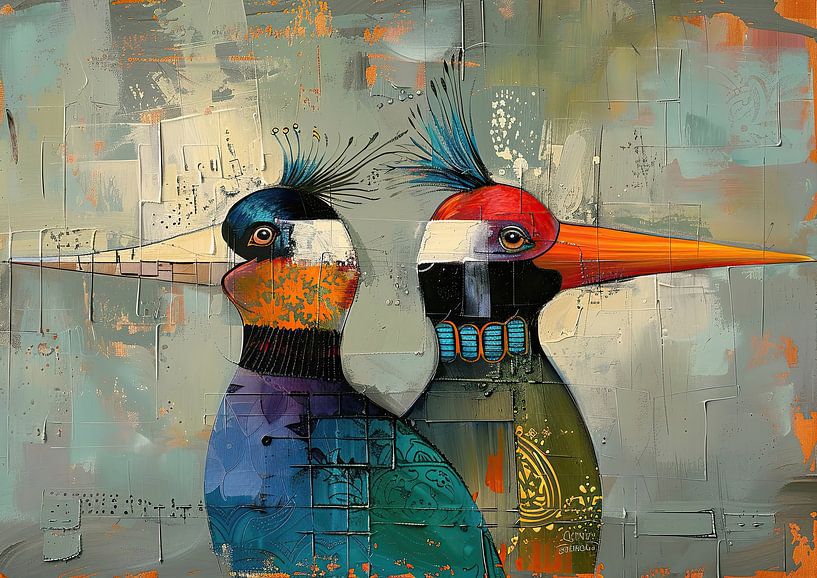 Buy this bird art Negotiations by Abstract Painting on canvas, ArtFrame, poster and wallpaper, printed on demand in high quality.