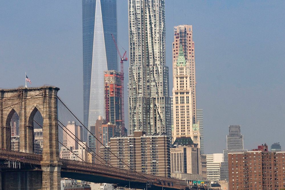 About "New York, Brooklyn Bridge overlooking Manhattan...."