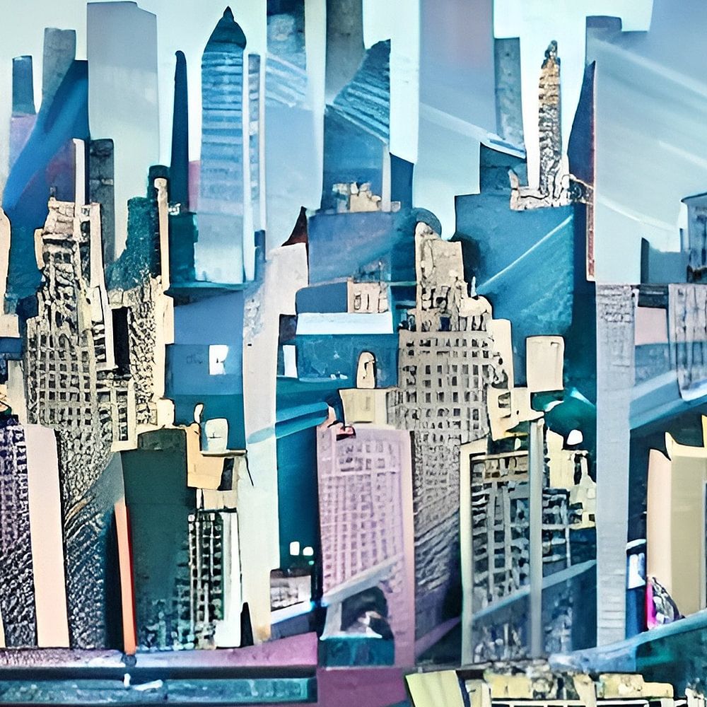 New York City Imagination comprises a series of multi-media artworks. Photographs in multiple layers are combined with fantasy images, creating a new perspective on the city. The fresh colours symbolise spring in 'the city that never sleeps'.