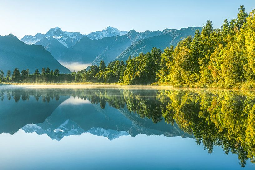 Buy the photo New Zealand Lake Matheson by Jean Claude Castor on canvas, ArtFrame, poster and wallpaper, printed on demand in high quality.