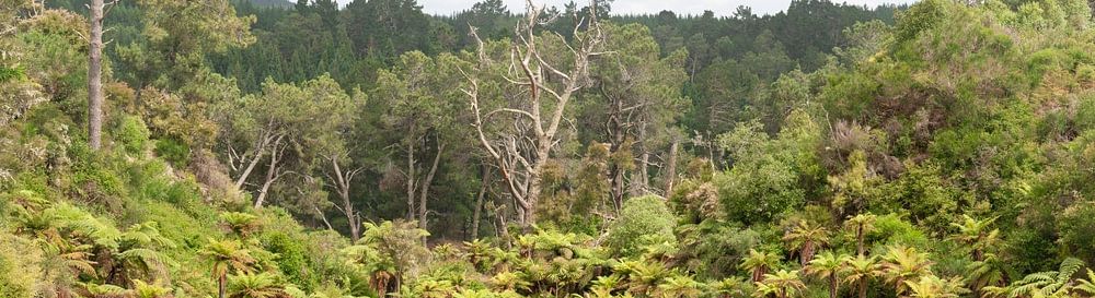 Taupo New Zealand Native bush with tree ferns on a valley on the way to Huka Falls