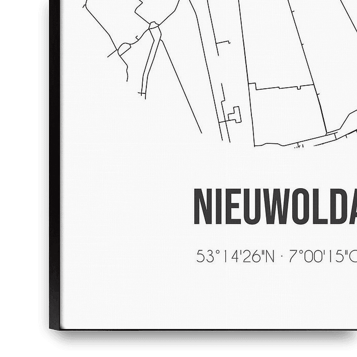 Buy this abstract artwork Nieuwolda (Groningen) | Map | Black and white by Prints of Place on canvas, ArtFrame, poster and wallpaper, printed on demand in high quality.