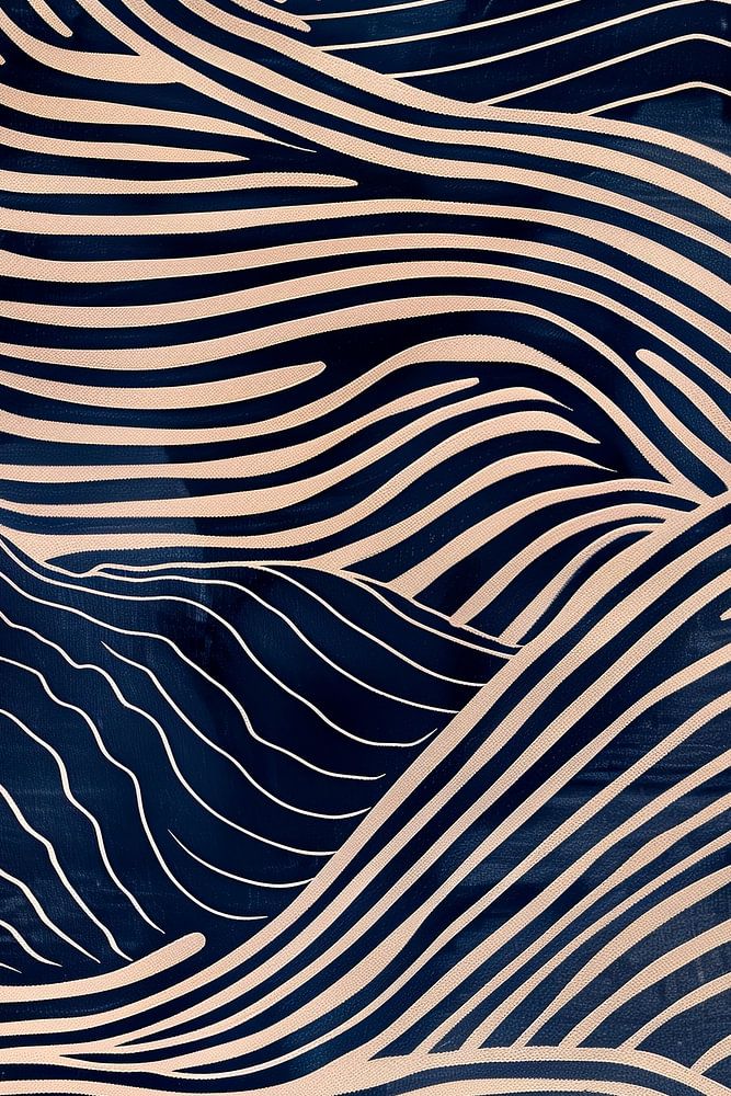 This work captures the hypnotic essence of waves under the moonlight, using a harmonious balance of navy blue and cream white. The repeating lines create a sense of movement and rhythm, while the dark background adds depth and mystery. It is a piece that exudes tranquillity but also intrigues, perfect for a space that desires a touch of elegance and contemplation. Whether in a quiet study corner or a lively living room, this piece brings a piece of nocturnal serenity to the home