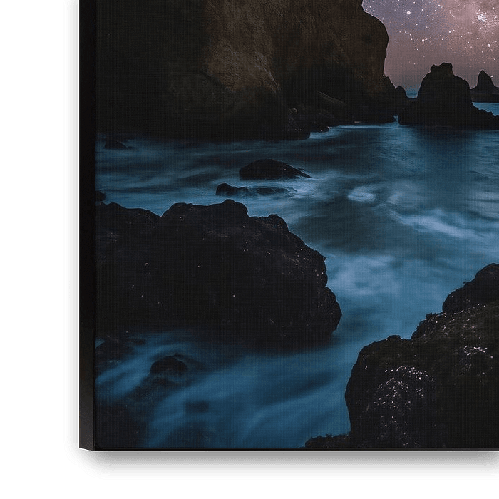 Buy this landscape artwork Night sky on the coast by fernlichtsicht on canvas, ArtFrame, poster and wallpaper, printed on demand in high quality.