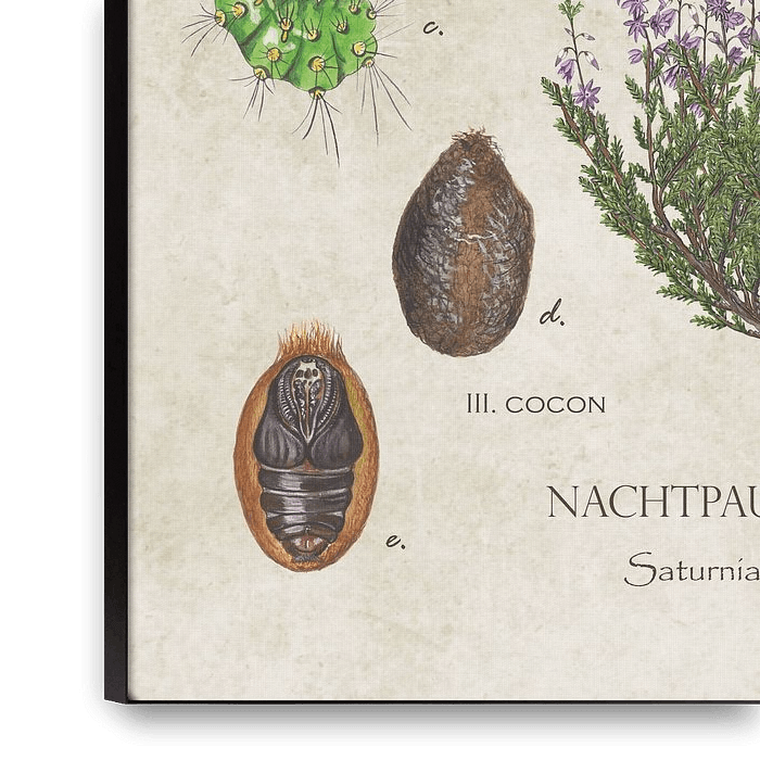 Night spawning eye - life cycle; egg, caterpillar, pupa, butterfly. Illustration Jasper the Horseman.