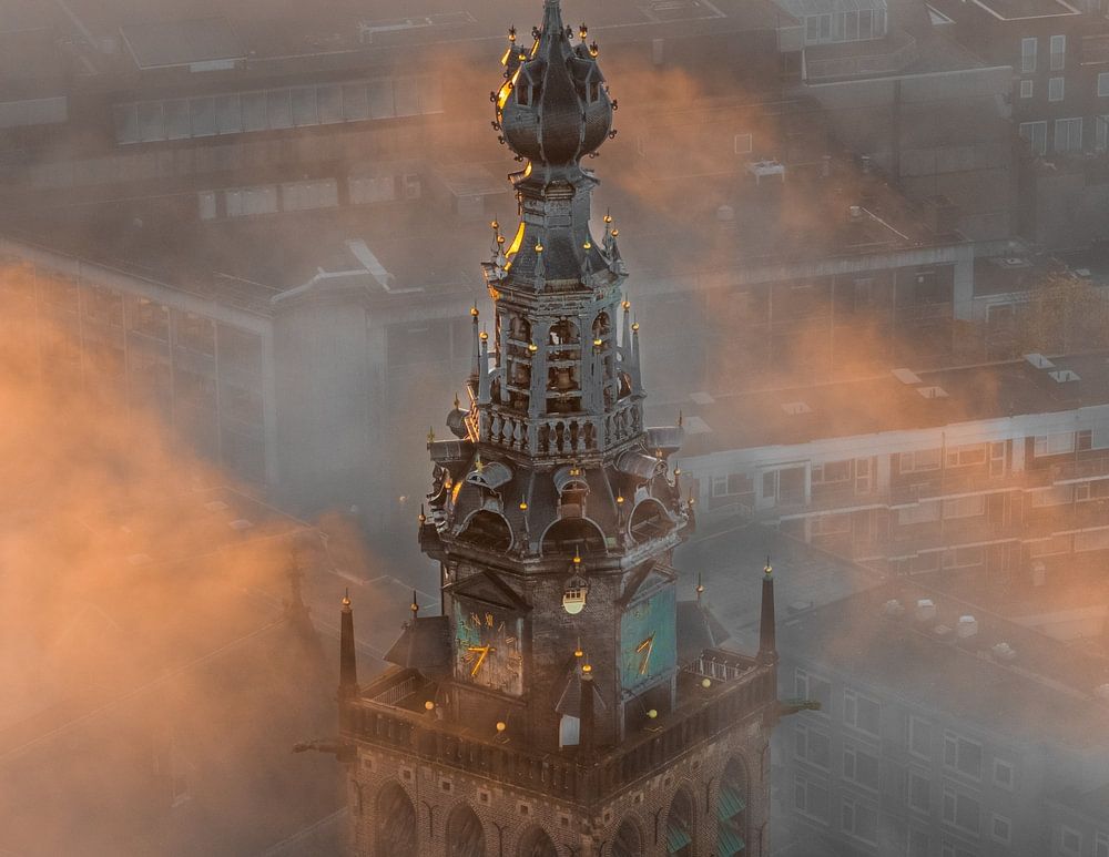 A magical foggy morning in Nijmegen produced this unique image of the Stevenskerk in the morning light. The rising set the church and the mist in a beautifully colourful light.