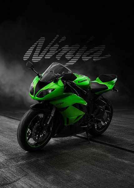 Neon Green Speed Demon. The Kawasaki Ninja, cloaked in mist and shadow. Its vibrant green body demands attention, symbolizing pure, unapologetic performance. Ready to strike.