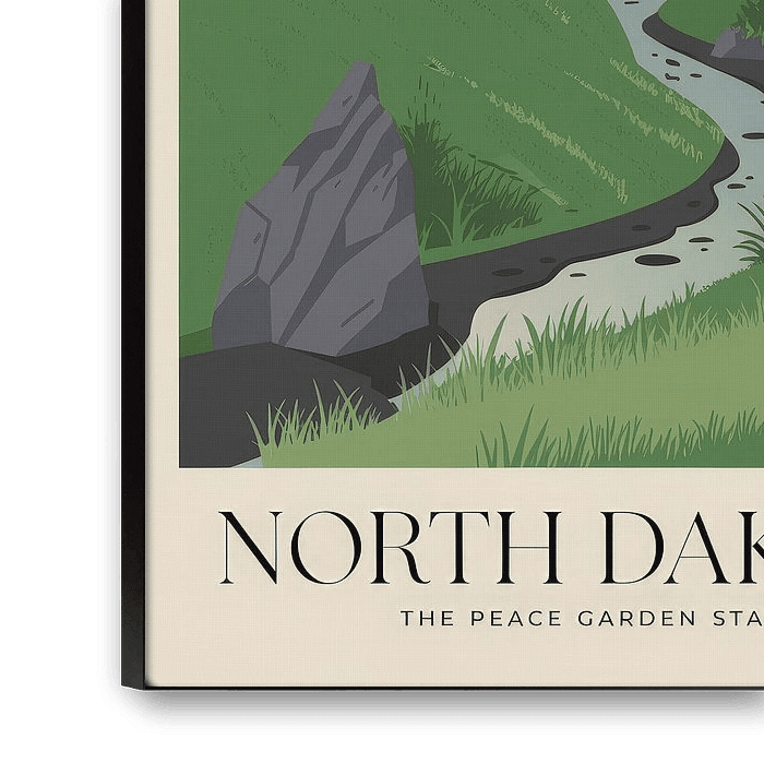 Gentle hills embrace a calm river, while the soft colours of nature play harmoniously with each other. The stylised depiction is reminiscent of unspoilt landscapes and invites you to dream. This work of art is perfect for the living room, where it spreads a feeling of peace and relaxation.