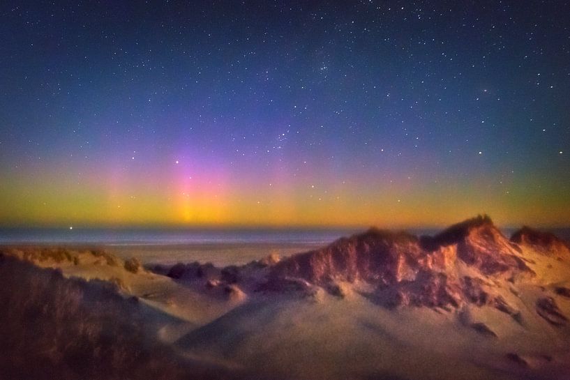 Northern lights seen from the area of dynamic dunes on the Boschplaat on the Dutch island ofTerschelling.