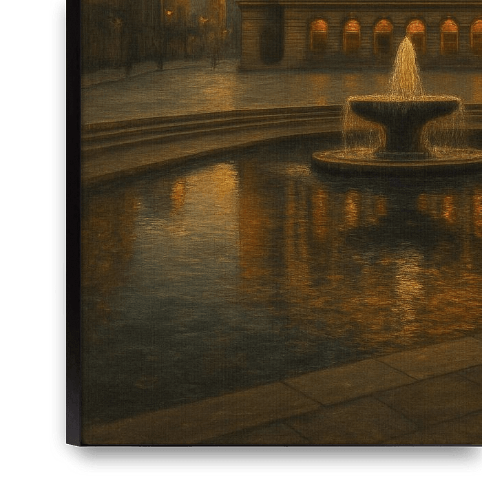 Nottingham at Dusk reveals the soul of the city as day fades into twilight — the grand Council House bathed in warm amber light, the fountains reflecting soft ripples beneath a sky of fading blue. This Edward Hopper inspired artwork turns an everyday city square into an evocative study of geometry, atmosphere, and silence. The streets,…