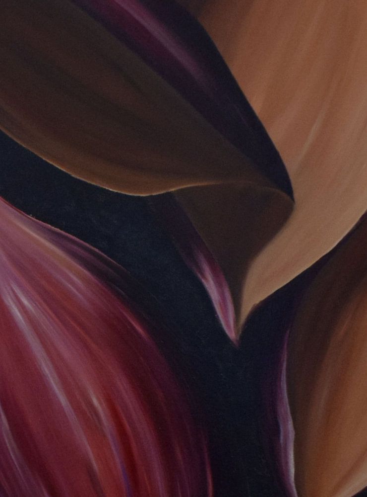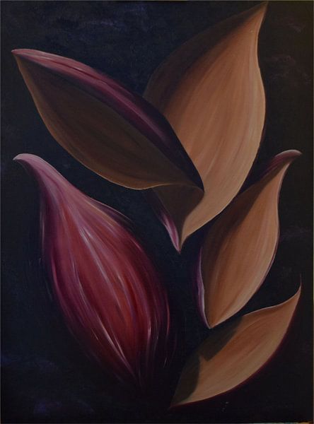 Nut shells. Like all my paintings, this one comes about simply by doing. First the background: black with a touch of purple. Then the composition, and seeing what happens next. Then the shapes, followed by the colours, and seeing what happens. Carrying on... Then chance... Yes.... Adding colour. Developing it further...... this…
