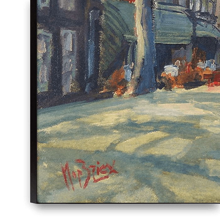 Afternoon autumn light on the beautiful Onze Lieve Vrouweplein with terraces in Maastricht. Quality reproductions here at Werk aan de Muur. Original painting for sale: www.briex.eu