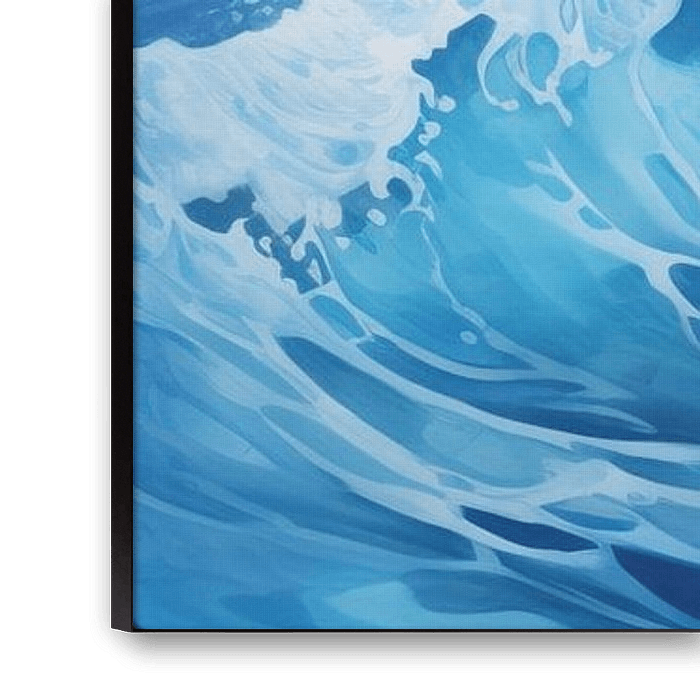 Ocean - We see a dynamic rendering of rippling water, rich in various shades of blue with accents of white foam. The painting offers a sense of movement and power, and the detailed brushstrokes create an almost photo-realistic impression of the ocean.