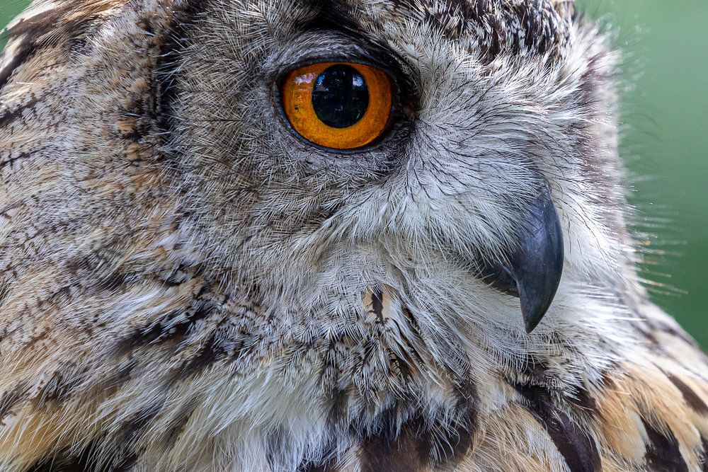 The eagle-owl is one of the largest species of owl, and females can grow to a total length of 30 in, with a wingspan of 6 ft 2 in, males being slightly smaller. / De oehoe is een van de grootste uilen soort enwls vrouwtjes kunnen tot een totale lengte van 75 cm groeien, met een spanwijdte van 188 cm, mannetjes zijn iets kleiner.