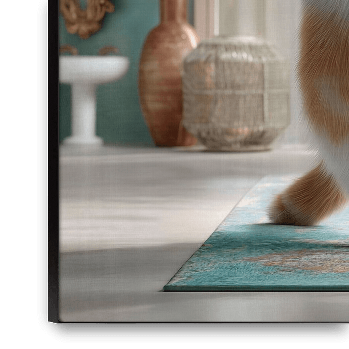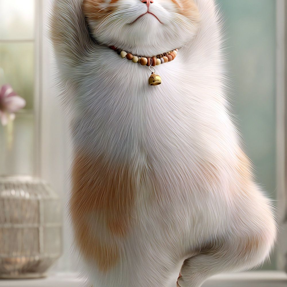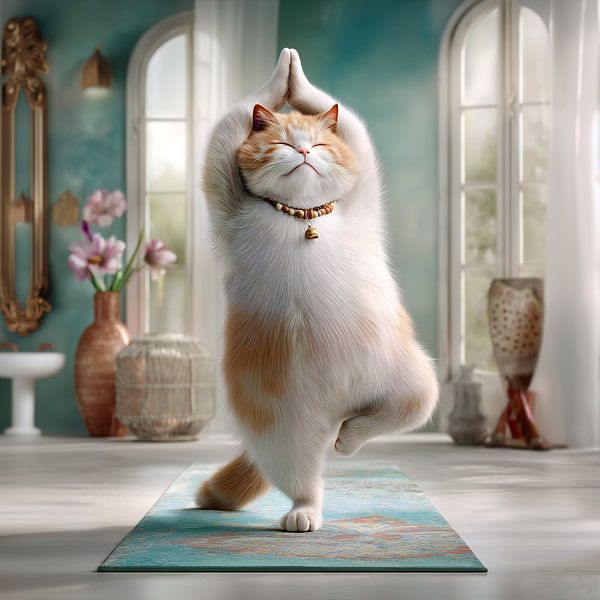 Fantasy portrait of a slightly fat cat in a yoga pose.