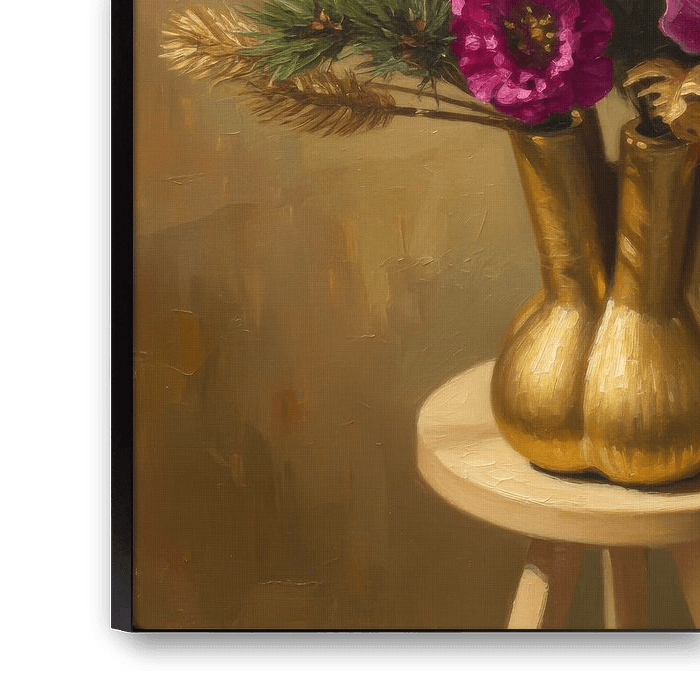 Oil Painting Still Life - Winter Flowers in Golden Vase by By Marjolein Design