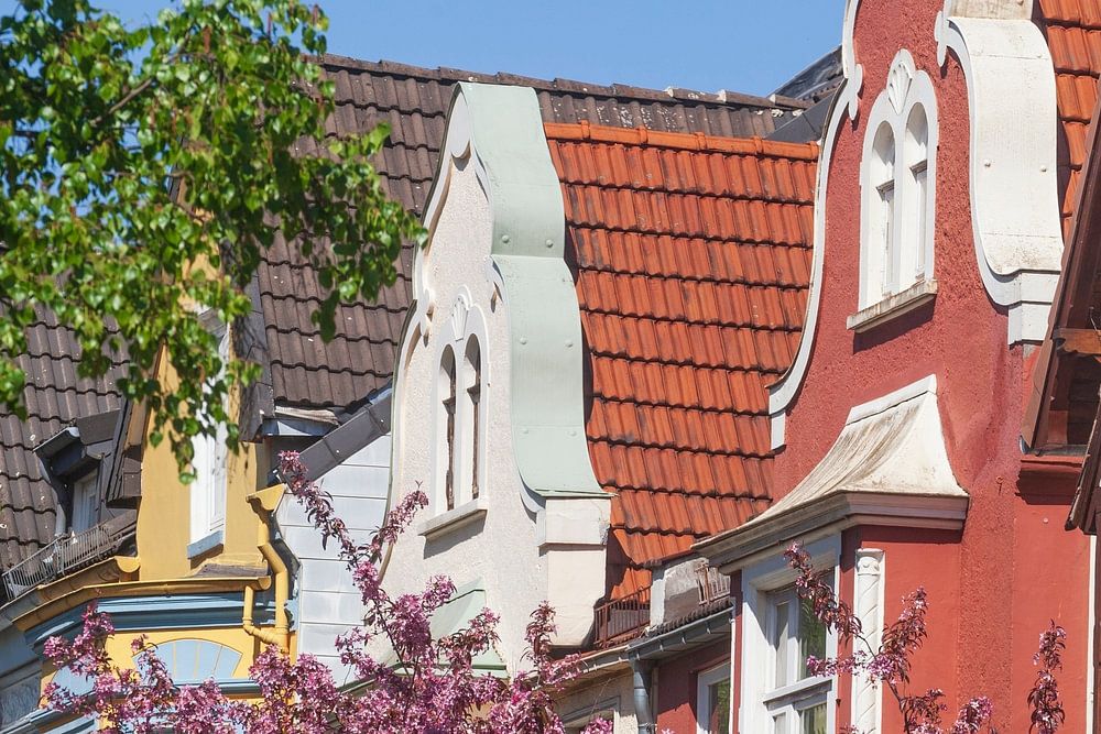 Old Bremen houses in Schwachhausen in spring, Bremen, Germany, Europe