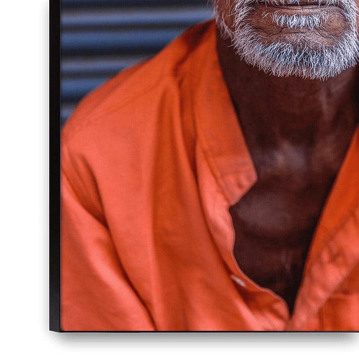 Buy this portrait Old Guru with glasses in Old Delhi by Leonie Broekstra on canvas, ArtFrame, poster and wallpaper, printed on demand in high quality.