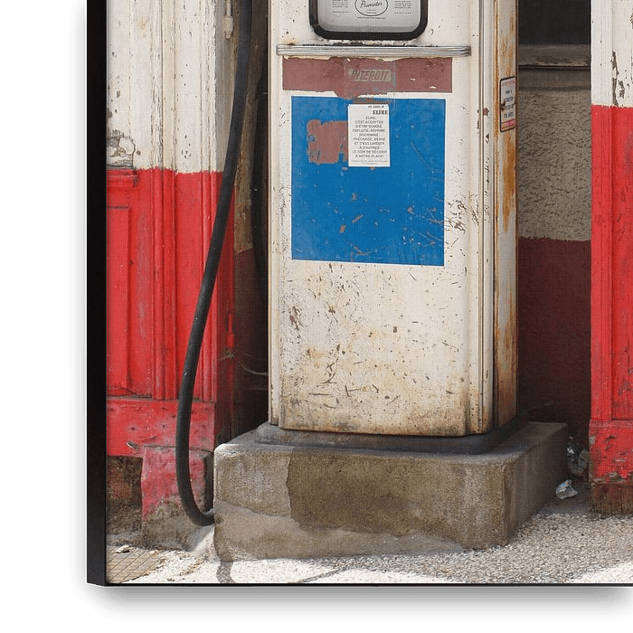 In a small village in Burgundy, there was this cute old petrol pump in front of a long-abandoned garage. It took me back to my childhood like this with those little colours.