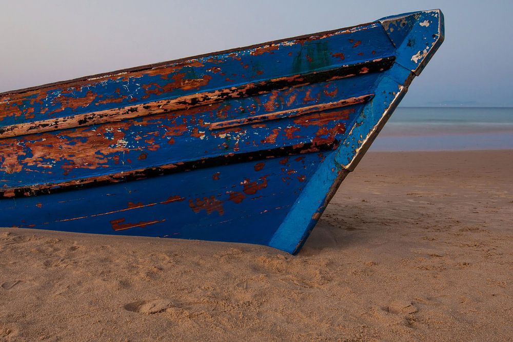 Buy this landscape artwork Old boat on the beach by Frank Herrmann on canvas, ArtFrame, poster and wallpaper, printed on demand in high quality.