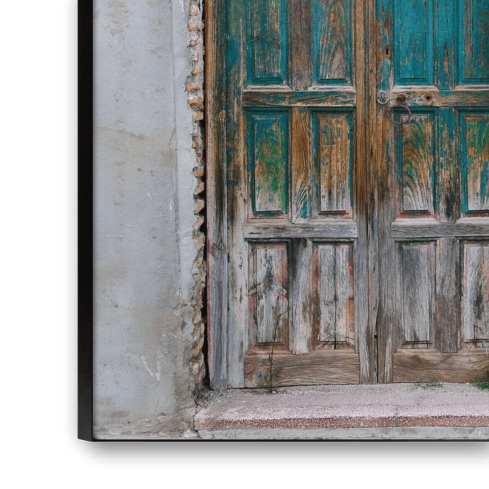 I came across this beautiful old door, walking through a small mountain village, in Andalusia (Spain). The blue-green colour is completely weathered at the bottom.