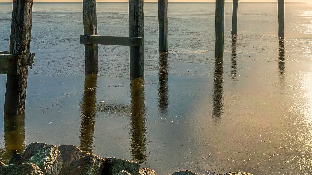 Old jetty poles in an icy silence with a soft morning light after a little night frost.