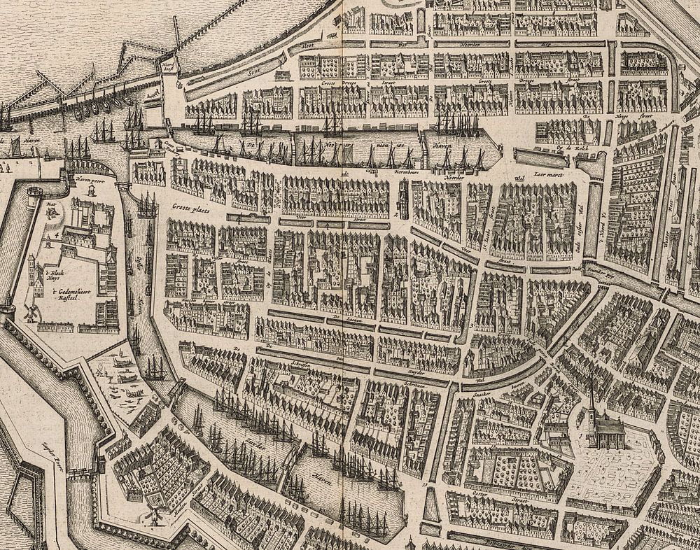 Old map of Harlingen from around 1652. The map is a legal copy of the original which is owned by the Rijksmuseum in Amsterdam.